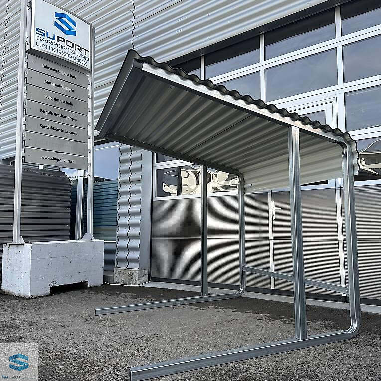 Das Modell SUPORT Steely ist der beste Velo / 2 Rad Unterstand für kleine Flächen in einer sehr feinen Optik.